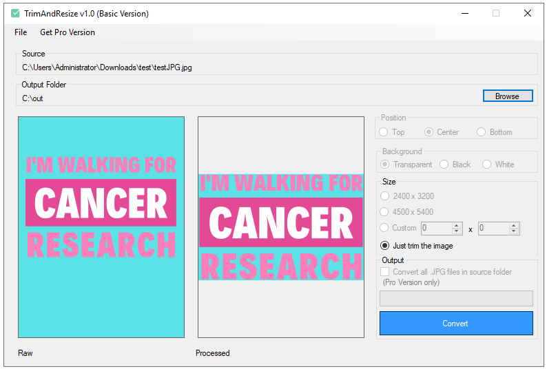 Trim & Fit (Basic Version) helps you quickly trim empty space (in any solid color) and make it fit to any canvas size.