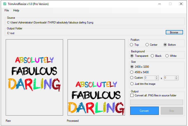Trim & Resize (Pro Version) helps you quickly trim empty space (in any solid color) and make it fit to any canvas size.